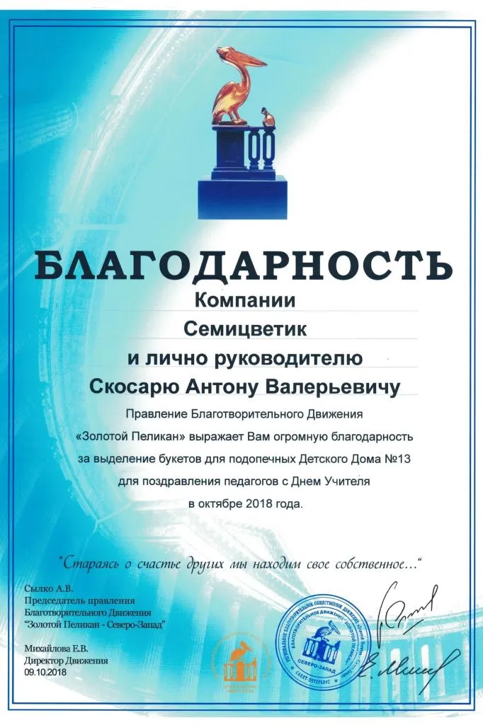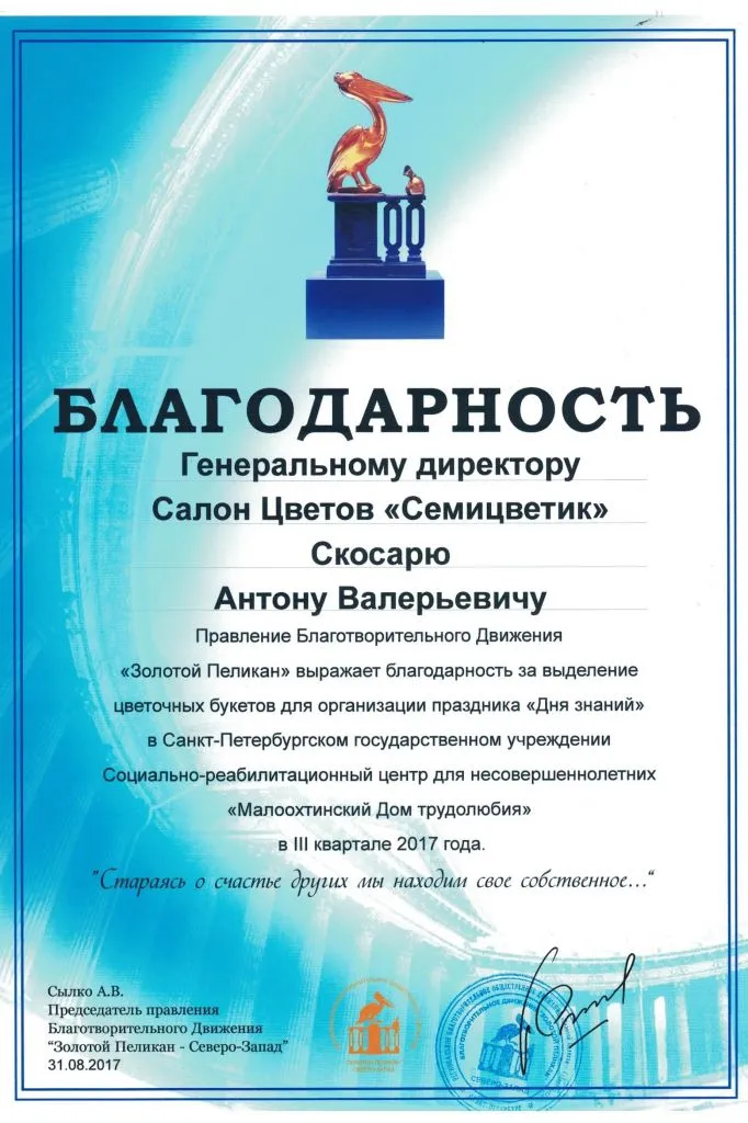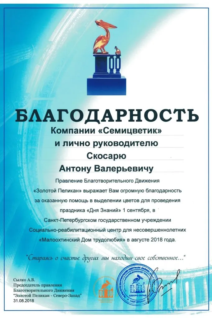 09_10_2018_blagodarnost_ZOLOTOJ_PELIKAN.jpg 31_08_2017g_Blagodarnost_Malookhtinskiy_Dom_trudolyubia.jpg 31_08_2018_dvizhenie_ZOLOTOJ_PELIKAN.jpg Blagotvoritelnoe_dvizhenie_ZOLOTOJ_PELIKAN.jpg 04_11_2013g_Blagodarnost_Detskiy_blagotvritelny_fond.jpg 27_01_2019_blagodarnost_ot_GBOU_shkoly_584.jpg 2018g_MY_ZDES_-2018_Blagodarnost.jpg 2018g_uchastie_v_programme_VMESTE_V_BUDUSchEE_-_PUT_LYuBVI.jpg proyavlenie.png